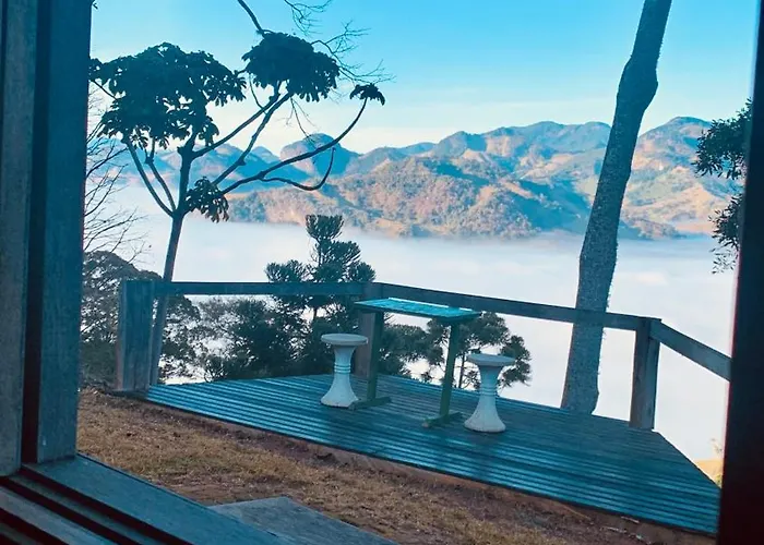 The 2-bedroom Cantinho Da Araucaria Goncalves villa includes a private parking lot and a terrace with views of the mountain.